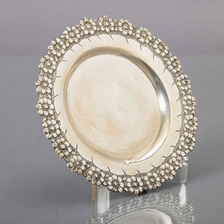 Em metal prateado, decoração gravada com friso vegetalista. Sinais de uso, desgaste.