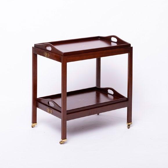 Em madeira exótica e outros materiais, assente em duas bases redondas unidas por travessa. Sinais de uso.