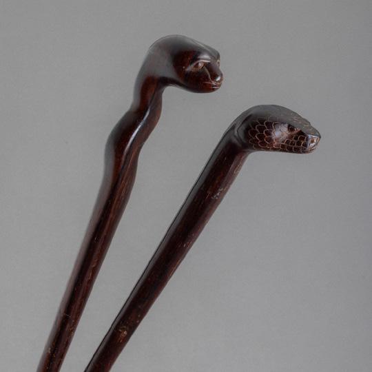 Esculpidos em granito. Pequenas falhas e cauda partida.