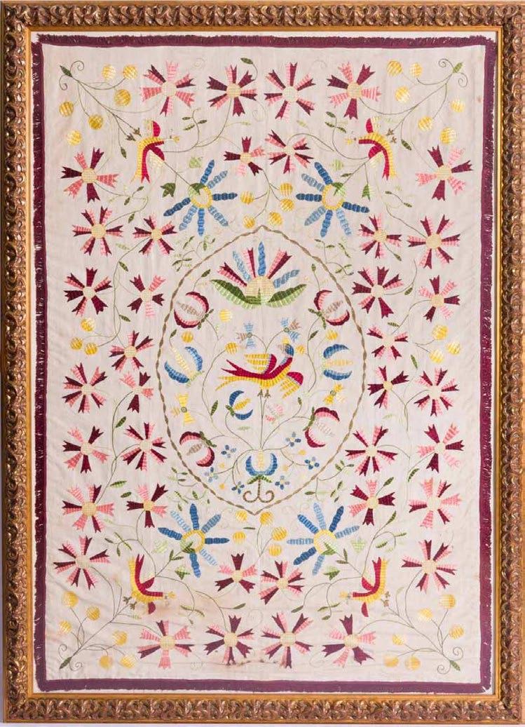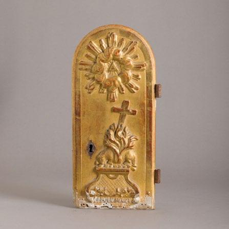 Placa oval esculpida em pedra calcaria, moldura forrada a veludo com galões e madeira dourada. Sinais de uso.