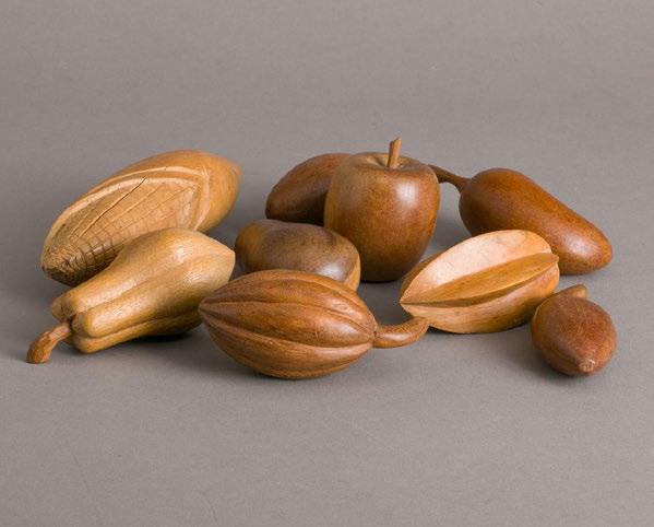 Varetas em madeira pintada “ovo e pintainho”, pequena aba em papel. Pequenas falhas e pequenos defeitos.