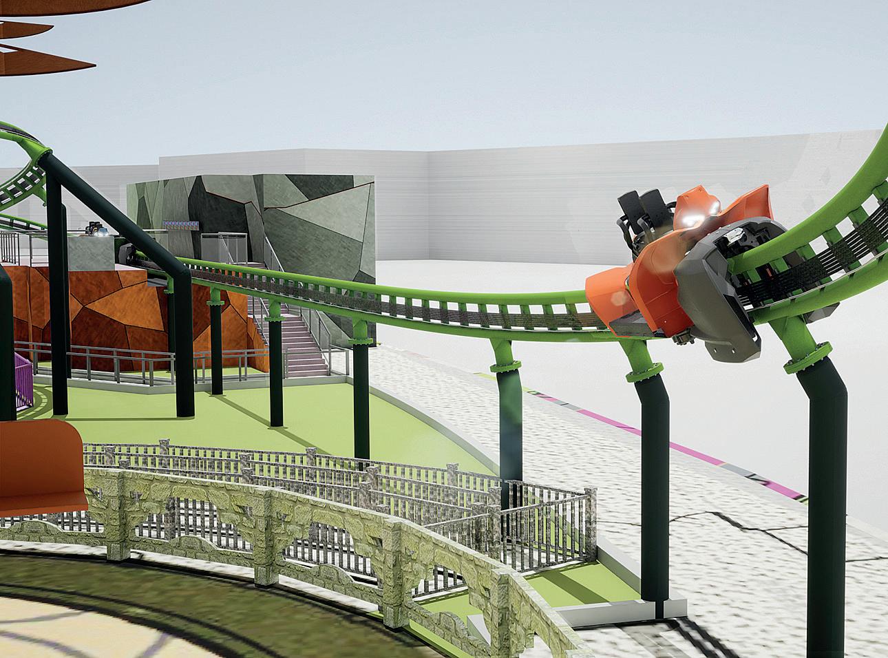 Suspended 11 meters (36 feet) above the ground, the coaster is being designed as the centrepiece for the new park. The track will wind through the park, weaving around the other attractions and encircling a towering drop ride in a thrilling tight curve.
