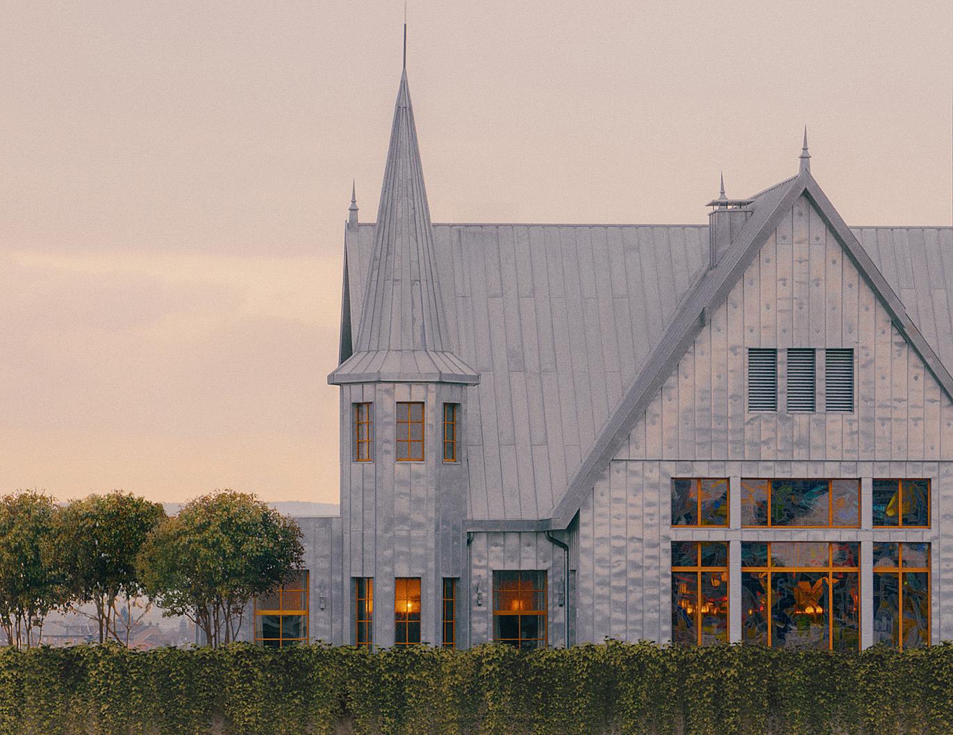 To strengthen the monolithic shape of the roof with its undulating edge we choose to use local wood shingles that visually blend into the surrounding nature and give the building a calm, gentle appearance.