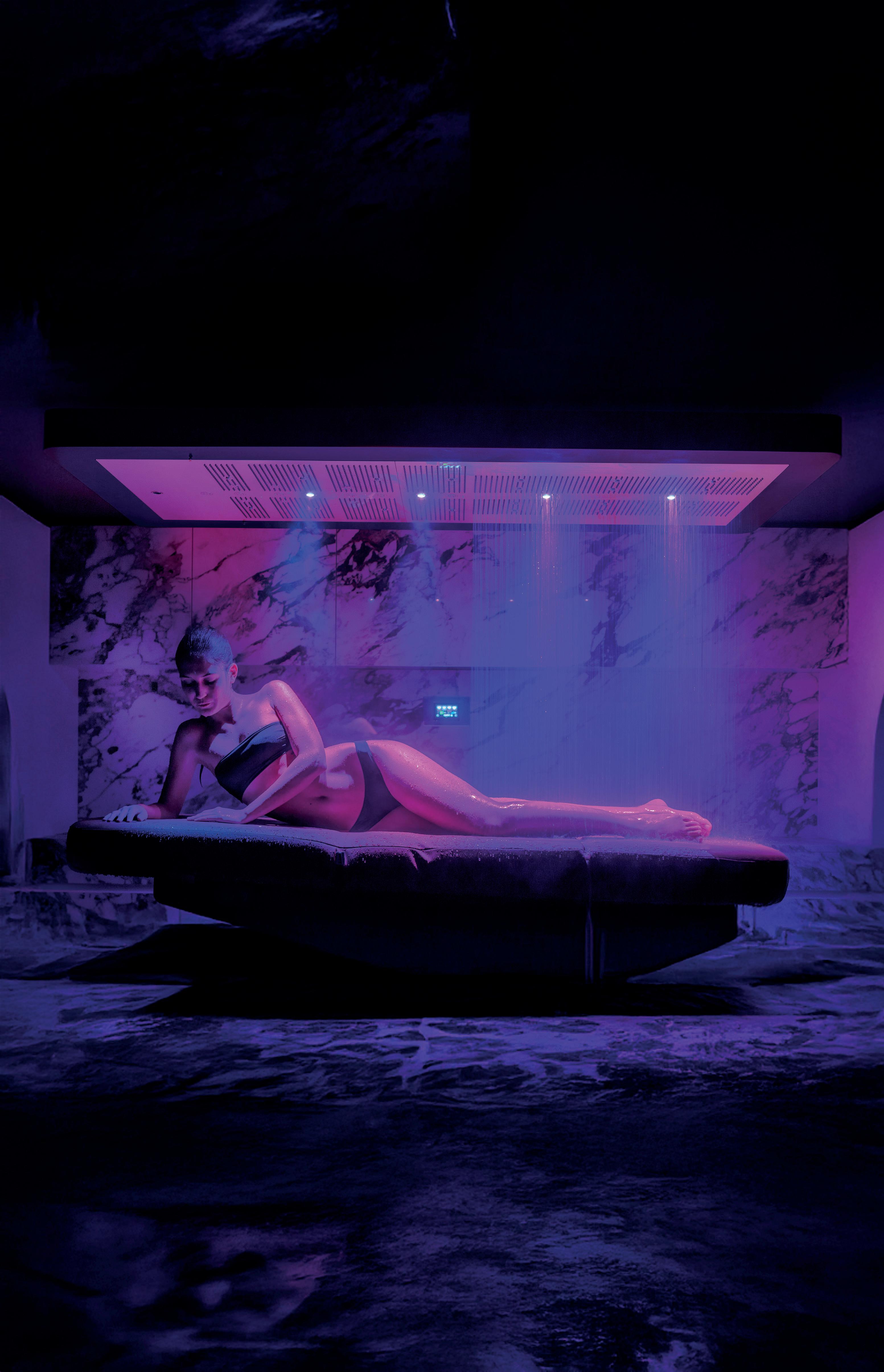 The 15-minute experience marks the conclusion of a 3-hour hydrothermal journey and sees guests reclining on ceramic heated loungers while listening to the hypnotic sounds.