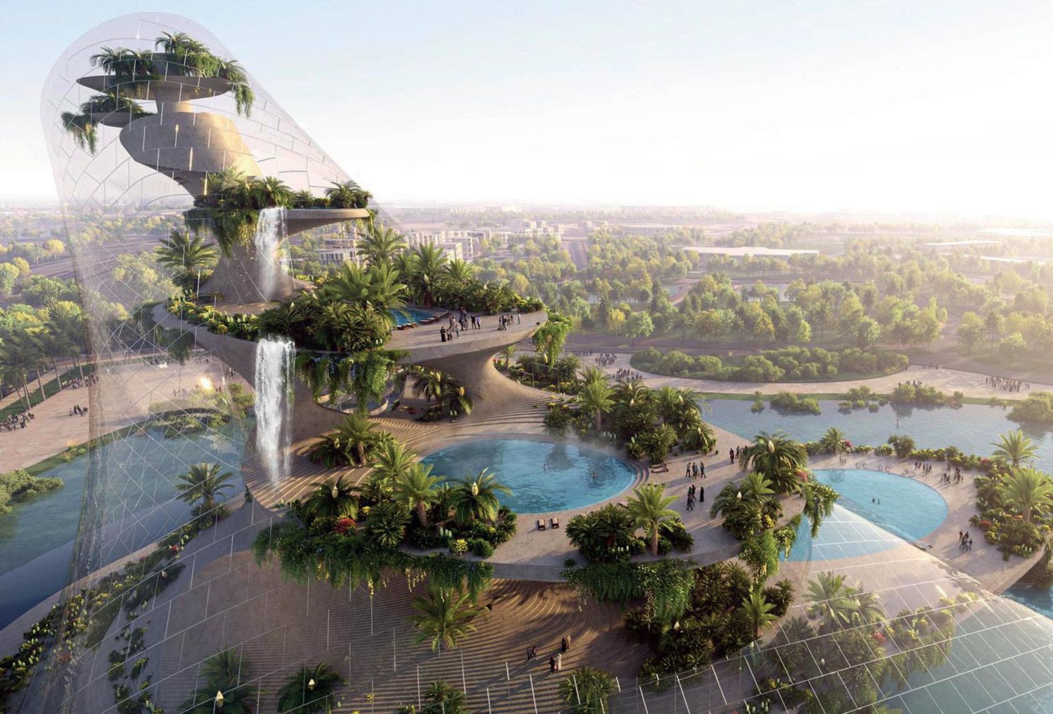 gardens suspended in the air, stacked terraces and cascading bathing pools – as well as venues for cultural events and social spaces.