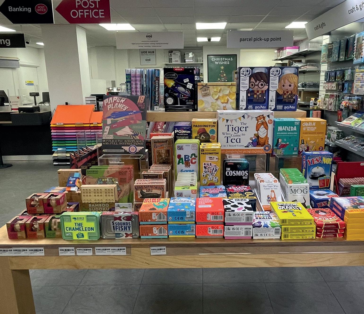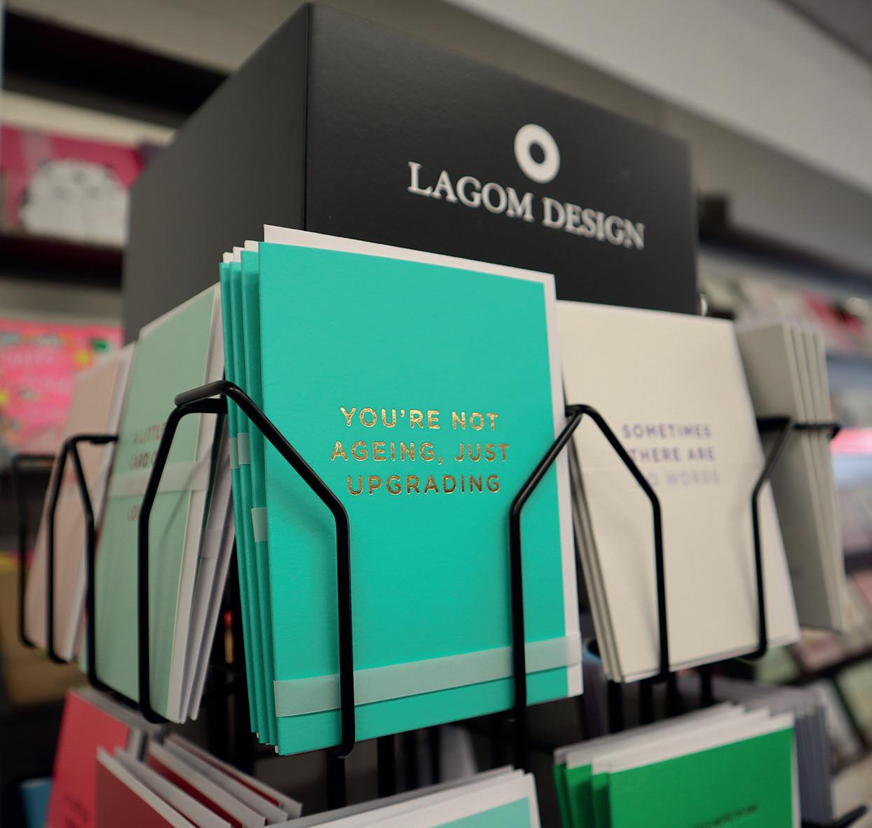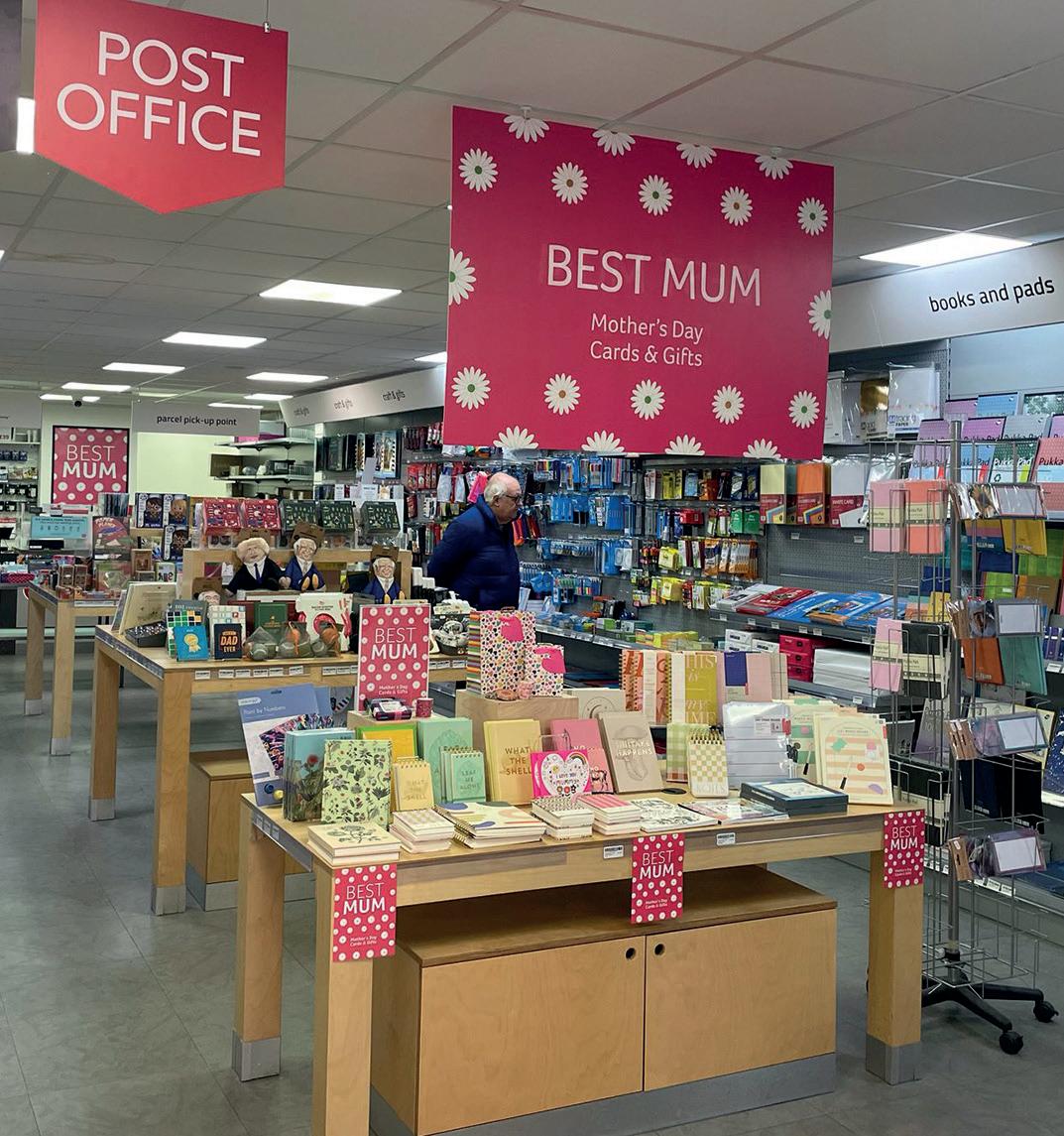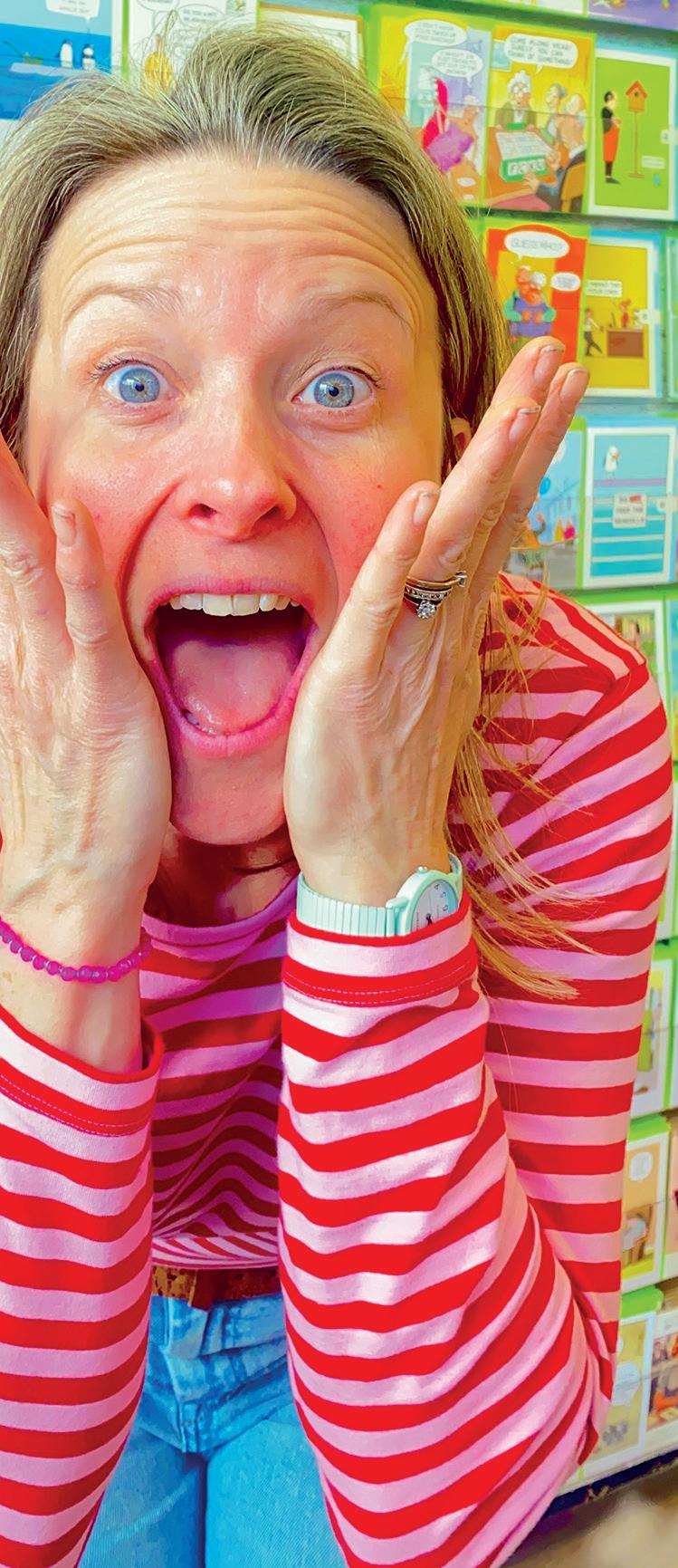 Odd Jobs Paul, and his skills and incredibly positive attitude have been a constant support. One of the initial changes we made, particularly in the card area, was the introduction of Perspex card display shelves that fit into the slat wall, bespoke made by a local company All Style Birchington. These allow us to display each card full-facing, so customers can really see the whole design and read the message easily. We started with these above the traditional card stands, but then we realised that by utilising the floor space di erently, we could allow more people to browse comfortably. We also came to the conclusion that having fewer cards displayed full-face was more impactful than having lots of cards stacked up in traditional stands. So, we changed the first side of the card shop, taking out around six card stands and replacing them entirely with these Perspex shelves.
