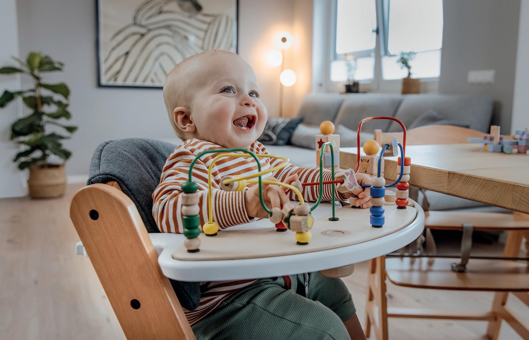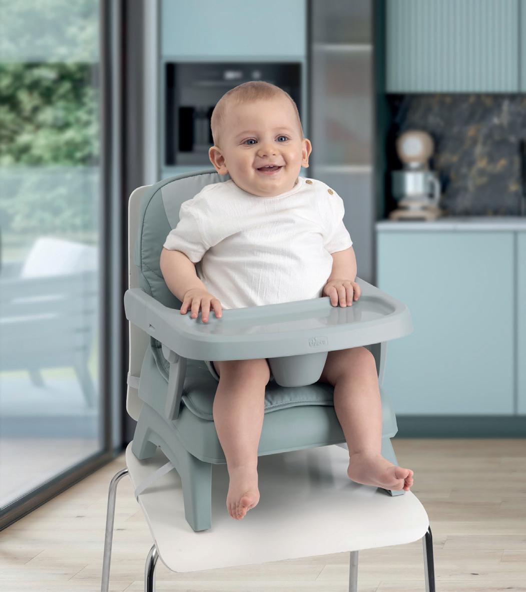 Inspired by the iconic curves of the egg3 stroller and featuring a base design in uenced by its distinctive wheels, the highchair delivers both style and continuity across the product range.