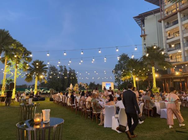 Fit for any grand celebration, the Infinity Lawn is adjacent to the signature FAVOLA Italian restaurant w hile enjoying the landscaped golf course lake view as a stunning backdrop.