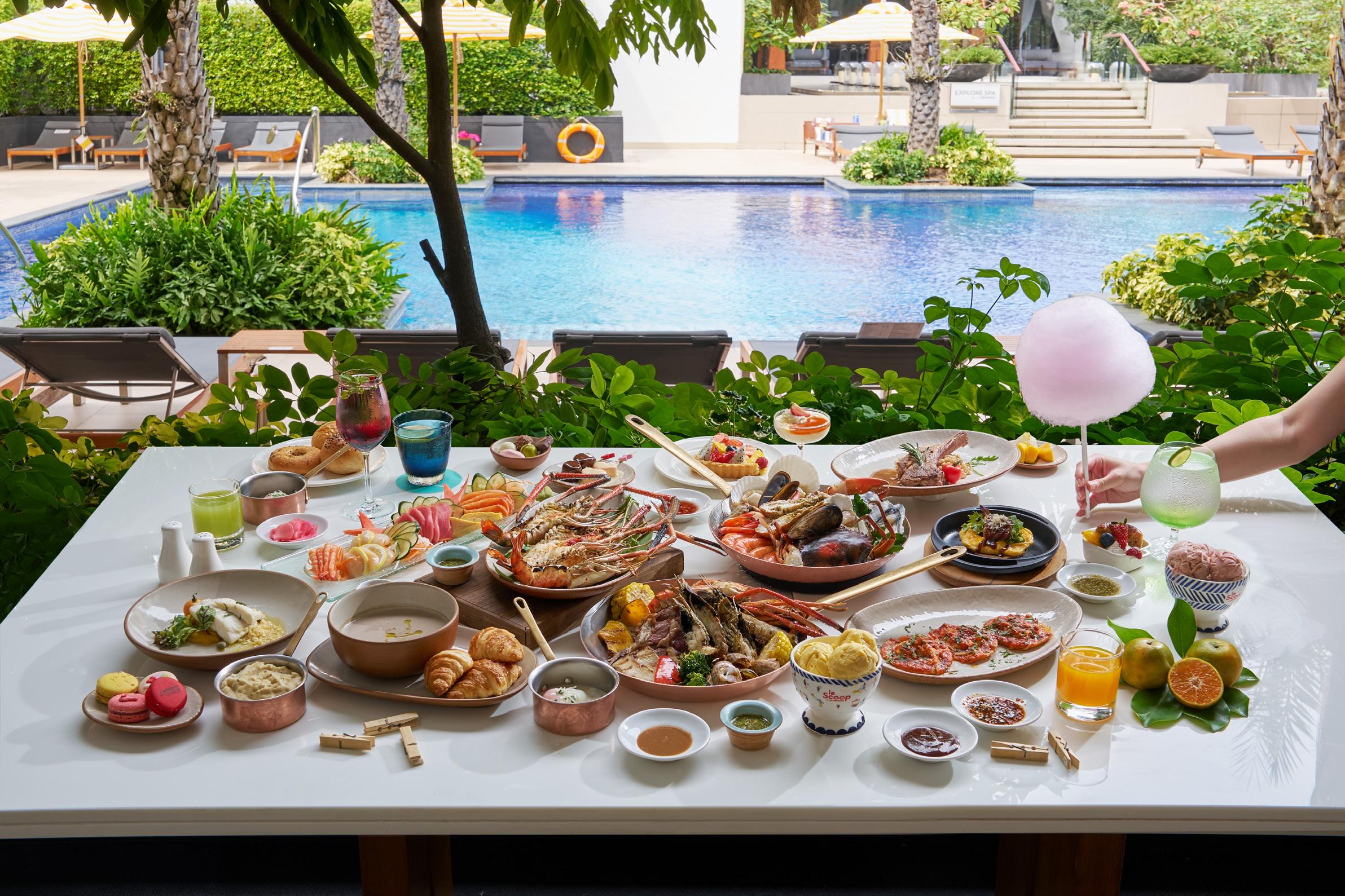 Savour the tastes of extravagant brunch bu et while relaxing by the Infinity Pool with your favourite drinks; all in a vibrant poolside resort life by Le Méridien อิ่มเอมไปกับบรั้นชบุฟเฟตมื้อเที่ยงวันเสารแสนอรอยและเพลิดเพลิน ไปกับเครื่องดื่มแกวโปรดริมสระอินฟนิตี้ในแบบฉบับ
