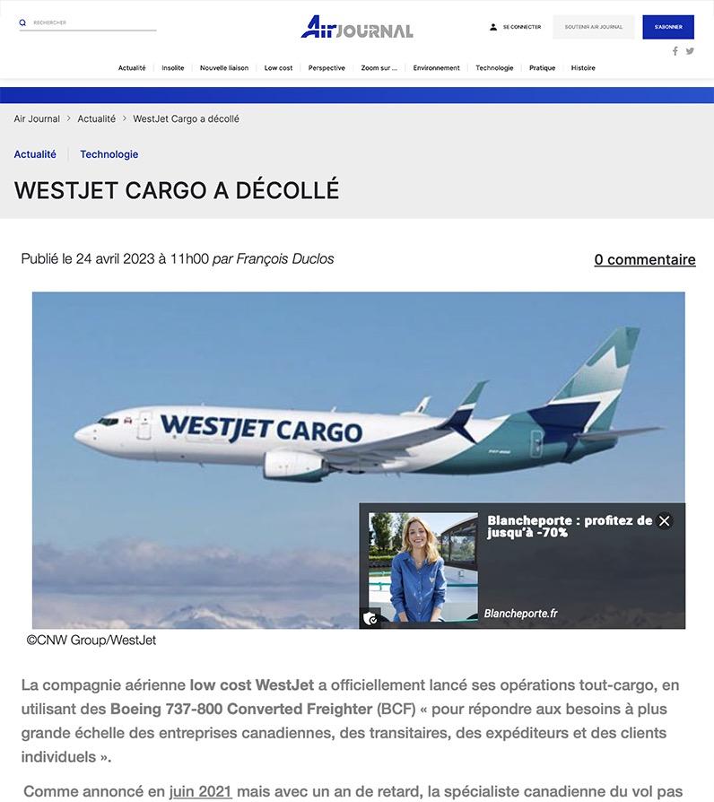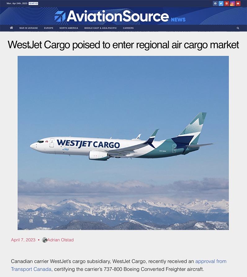 READ THE ARTICLE Westjet Cargo a décollé 24 April 2023
