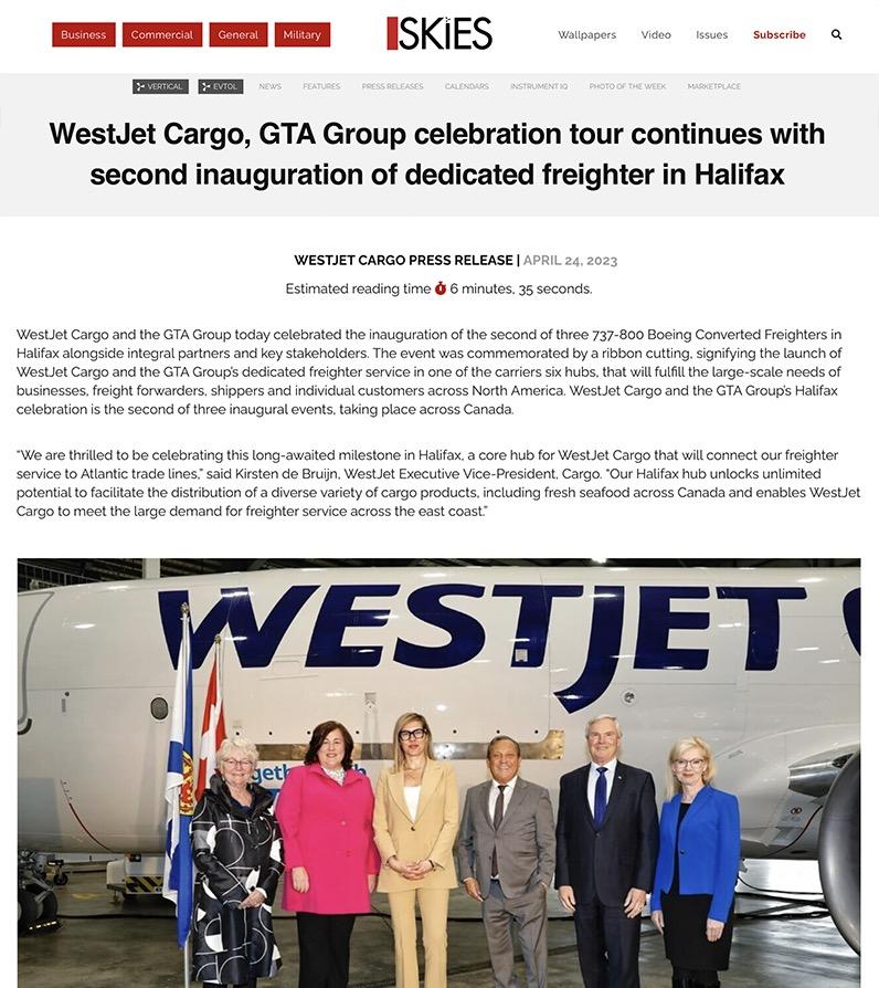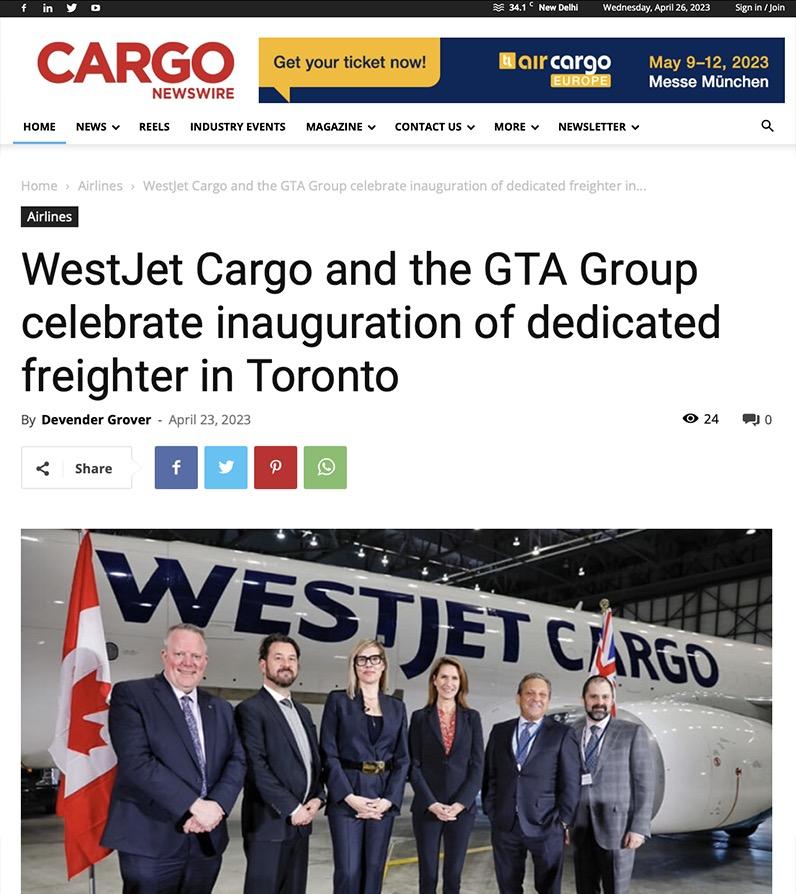READ THE ARTICLE WestJet Cargo and the GTA Group celebrate inauguration of dedicated freighter in Toronto 24 April 2023
