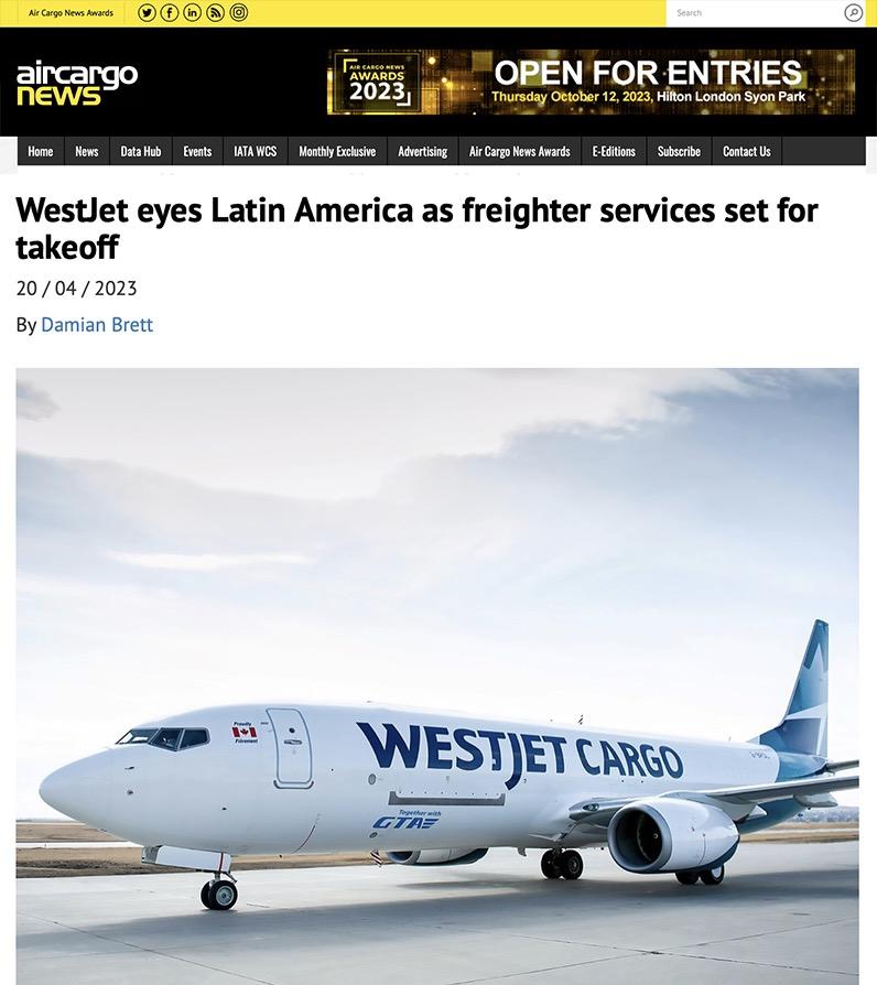 20 April 202 3 READ THE ARTICLE WestJet eyes Latin America as freighter services set for takeoff