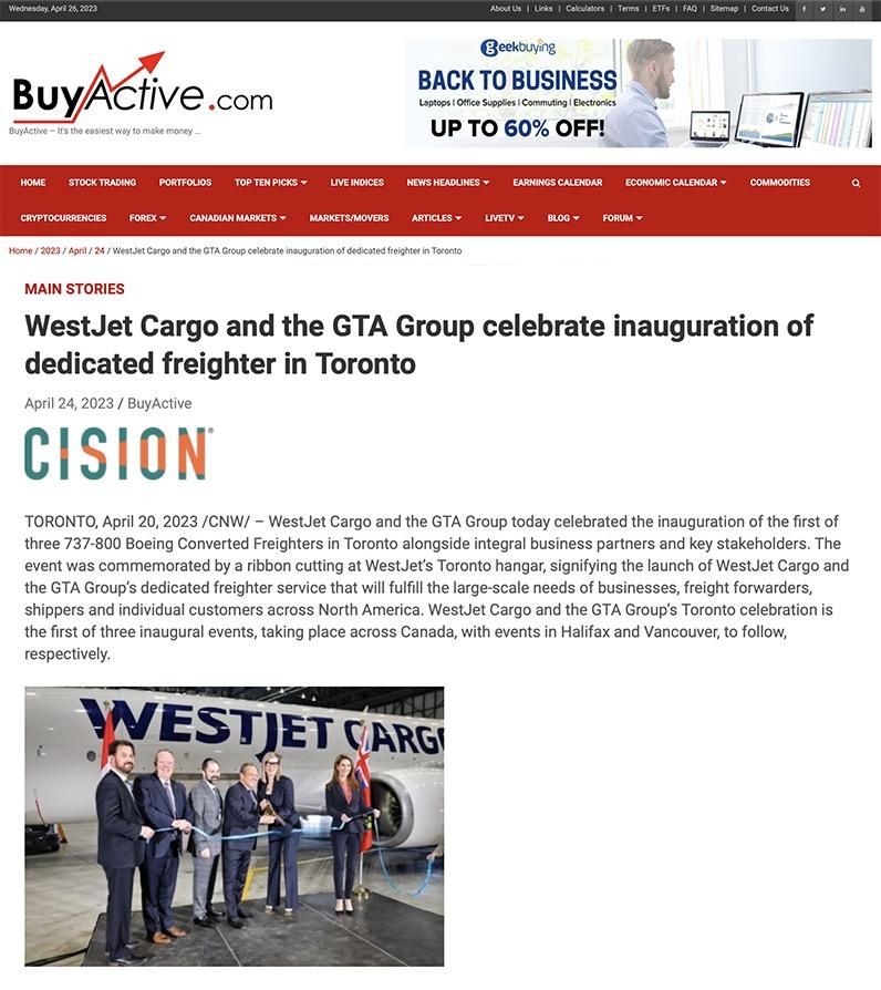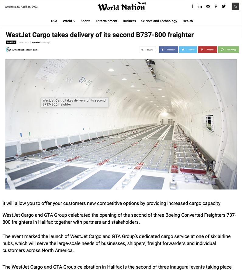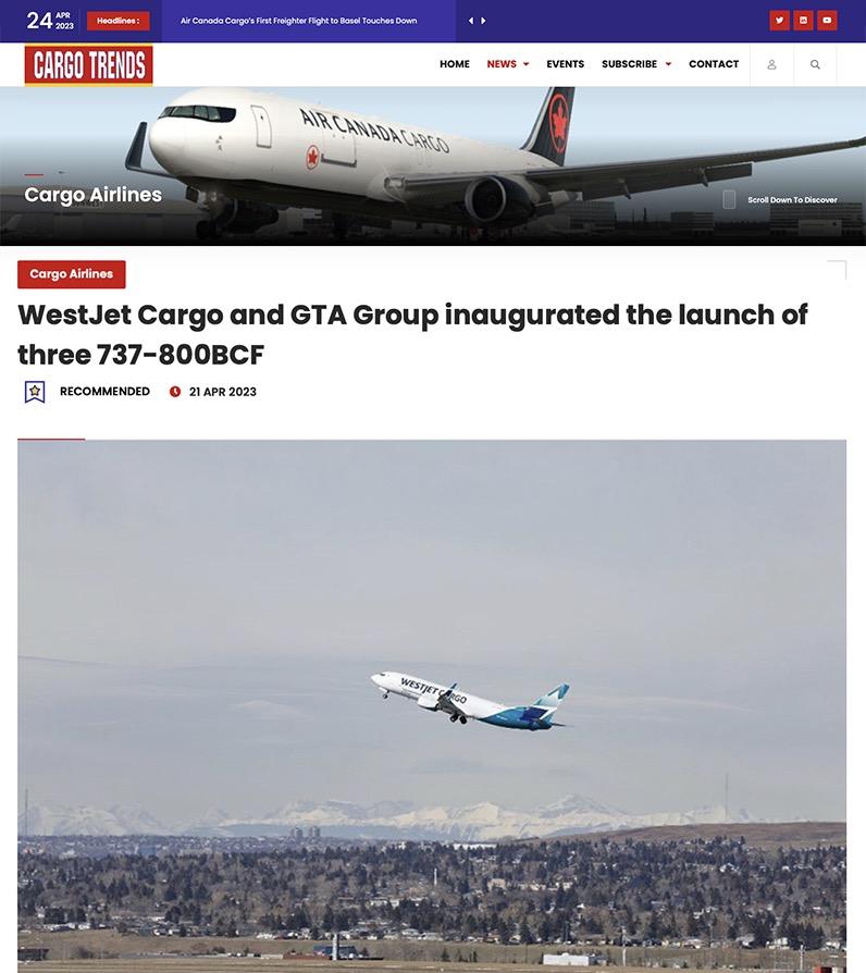 READ THE ARTICLE WestJet Cargo, GTA Group launch freighter operations 21 April 2023