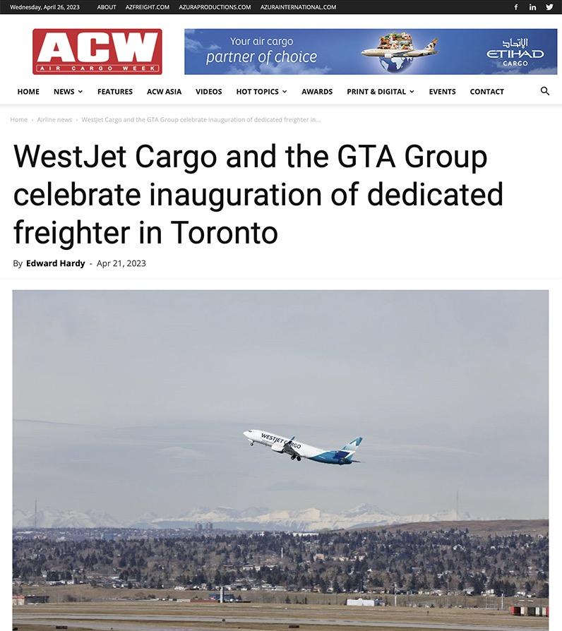 READ THE ARTICLE WestJet Cargo and the GTA Group celebrate inauguration of dedicated freighter in Toronto 21 April 2023