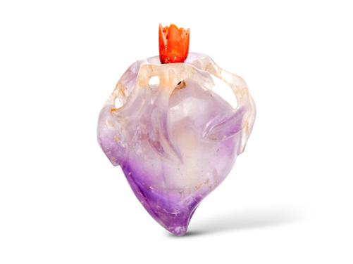 A white jade bottle of similar shape is illustrated in ‘Snuff Bottles in the Collection of the National Palace Museum, Taipei’, 1991, p. 167, no. 166. $800-1,200
