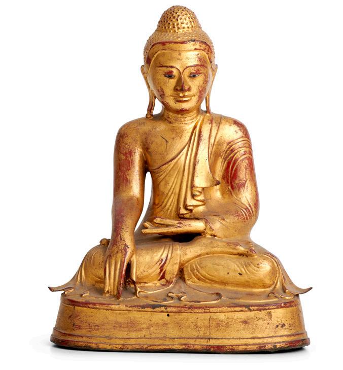 A BURMESE GILT-LACQUERED BRONZE FIGURE OF BUDDHA