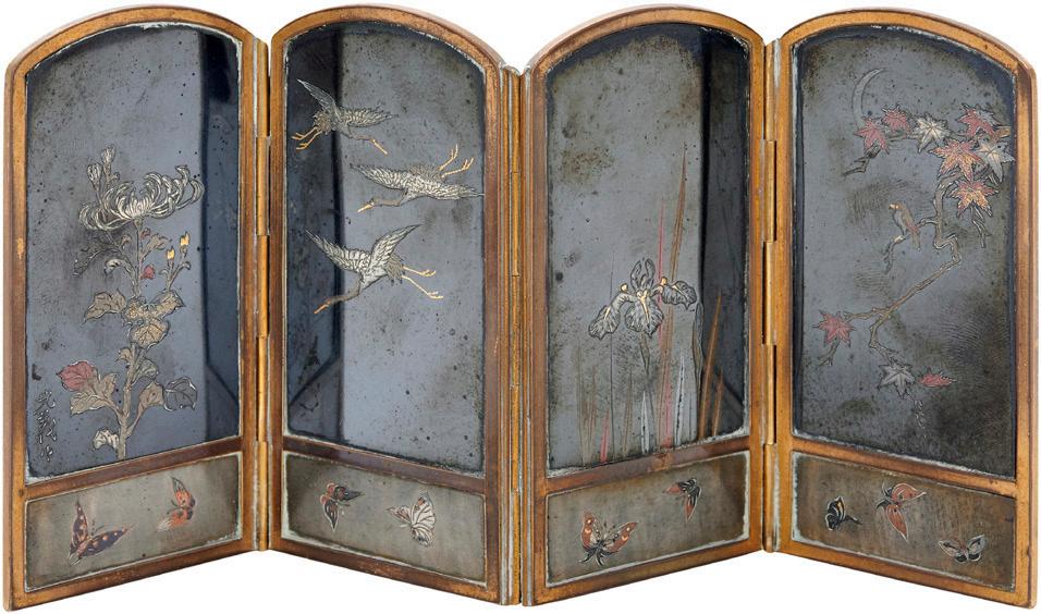 Our front cover showcases a rare tin-glazed panel by Cantagalli, a late 19th century example of Renaissance revival and a return to the handmade crafts after the industrial revolution. Another highlight of the auction is the naturalistically cast bronze and ivory Fille au Pyjama sculpture by Demetre Chiparus (lot 105). Chiparus is considered one of the most influential sculptors of the Art Deco period. This model is illustrated is in Alberto Shayo’s tome, Chiparus, Master of Art Deco