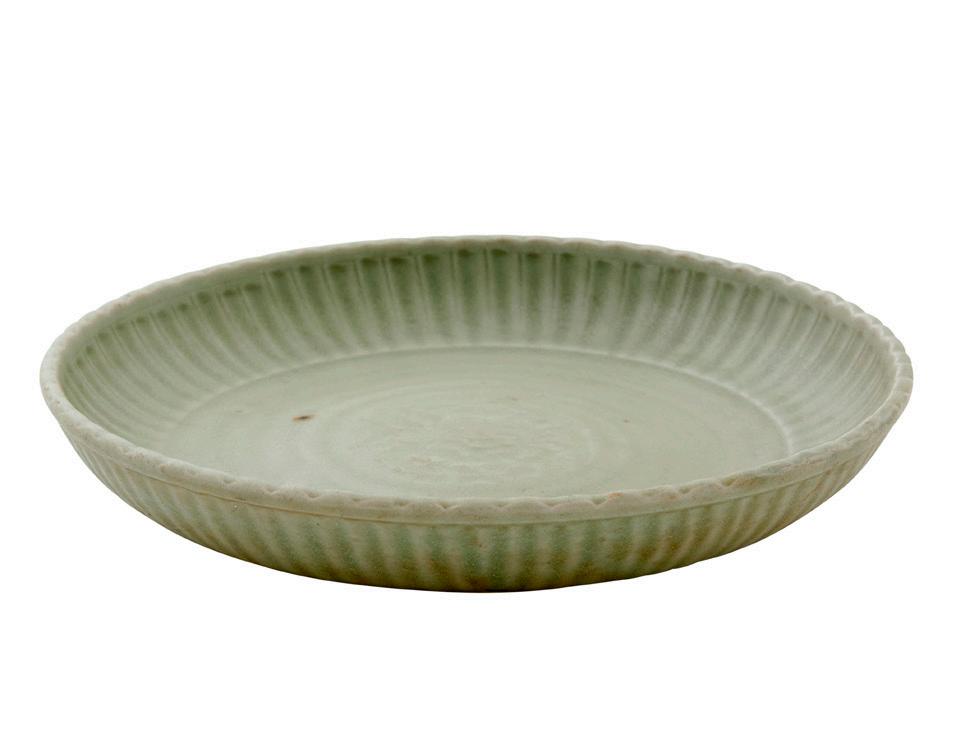 Twelve plates, a serving cradle on feet, and an ornamental bunch of asparagus, the wells of the plates formed with cradles modelled as asparagus spears within the moulded borders, the serving cradle also modelled as asparagus spears, the plates impressed ‘Longchamp Terre de Fer’ and with pattern numbers underside, the ornamental bunch probably later The plates each 26cm in diameter. the cradle 9cm high, 24cm wide, 17cm deep $500-700