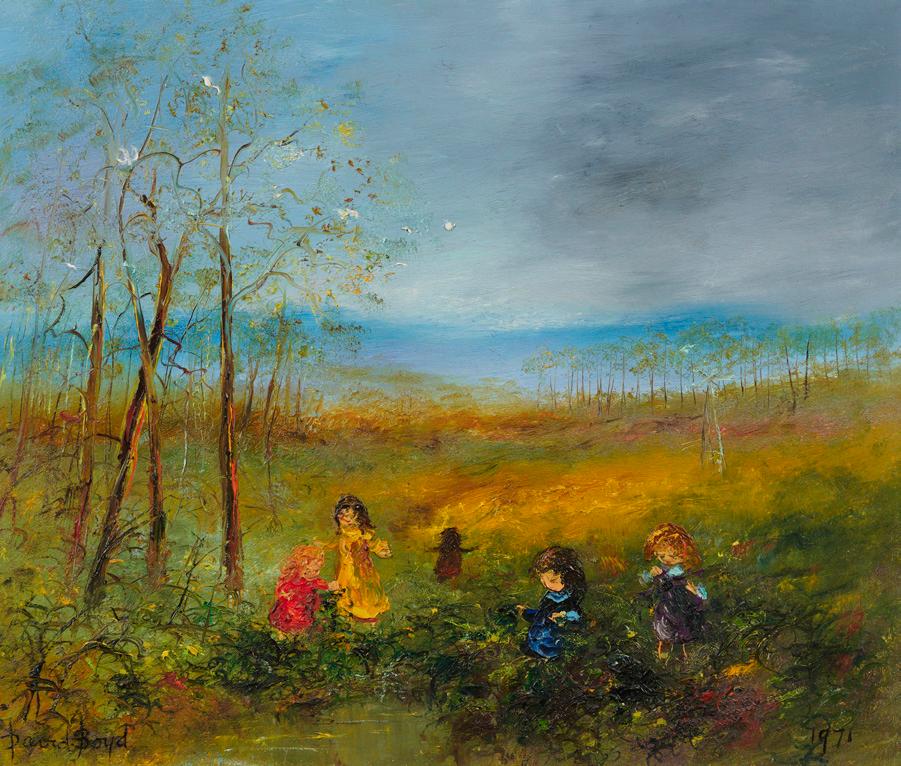 From Western Australia, Robert Juniper’s (Landscape with Figures) 1973 from the estate of Louis and Lily Kahan captures the richly worked textures and mythic presences for which the artist is celebrated. Evoking the Wheatbelt and desert landscapes, Juniper forged a distinct way of depicting the Australian landscape that continues to resonate deeply with collectors.