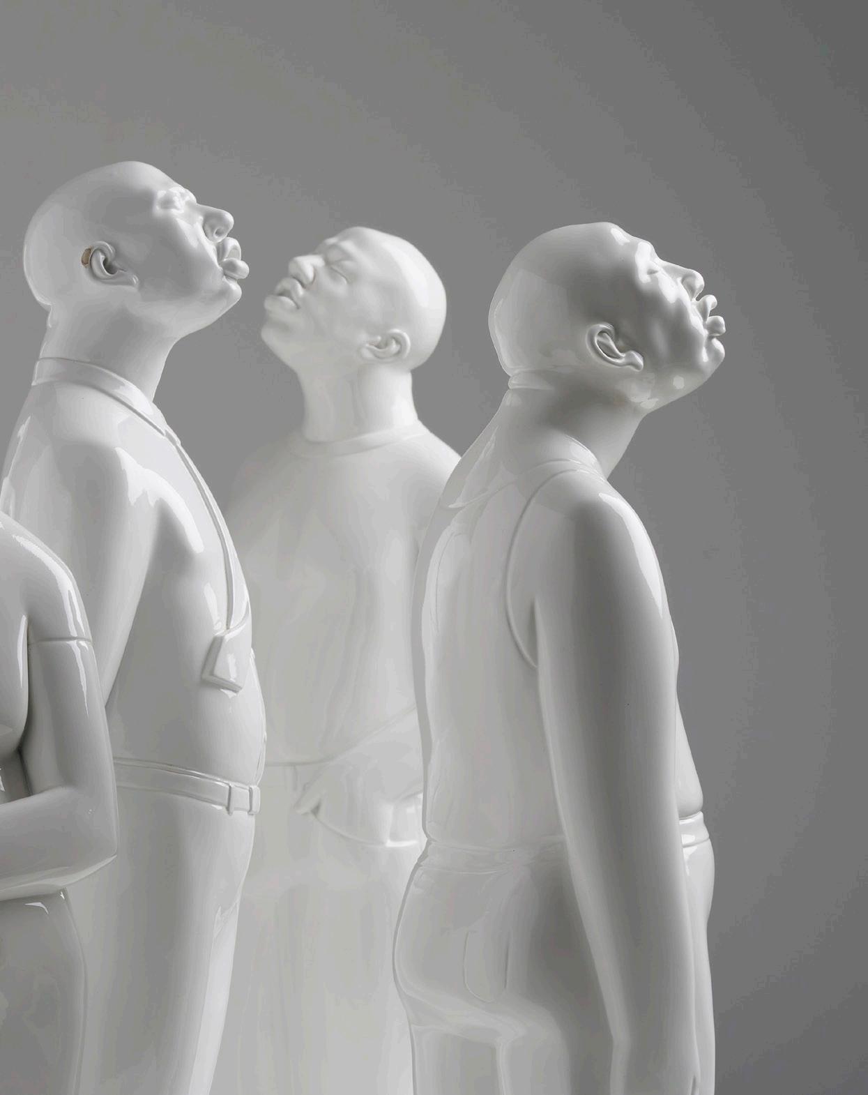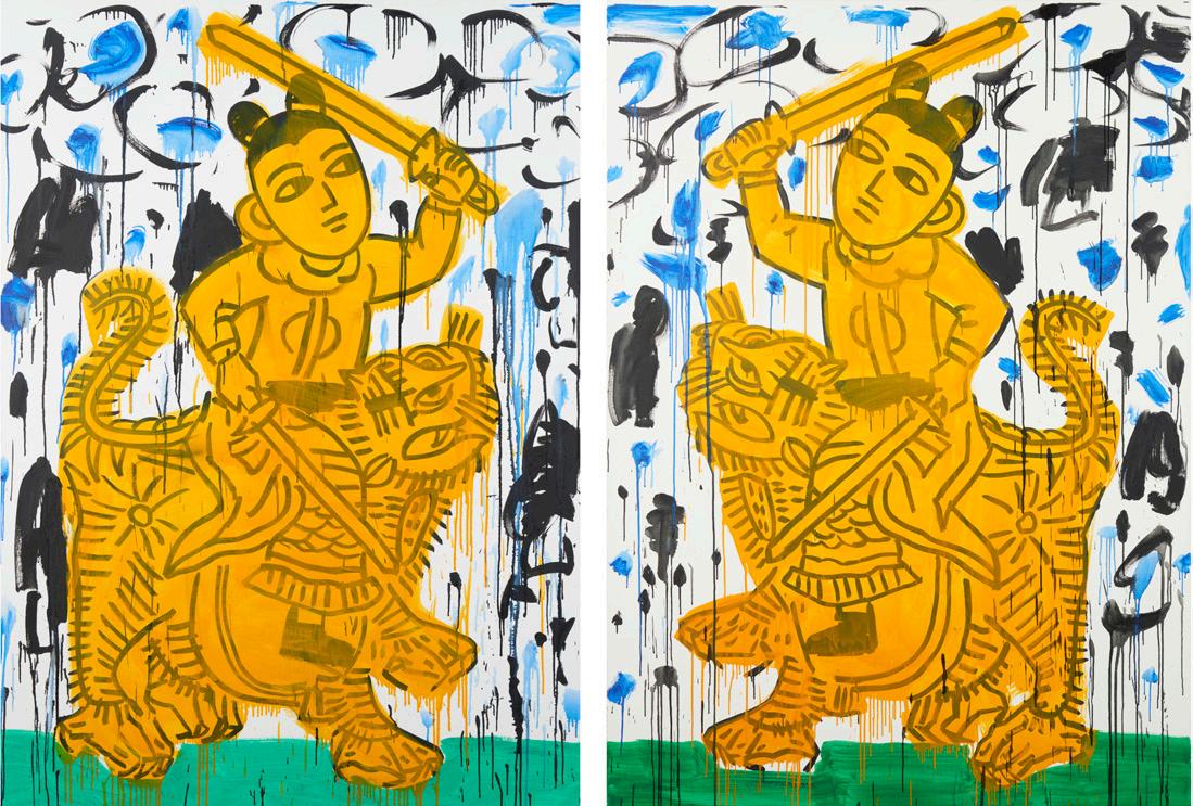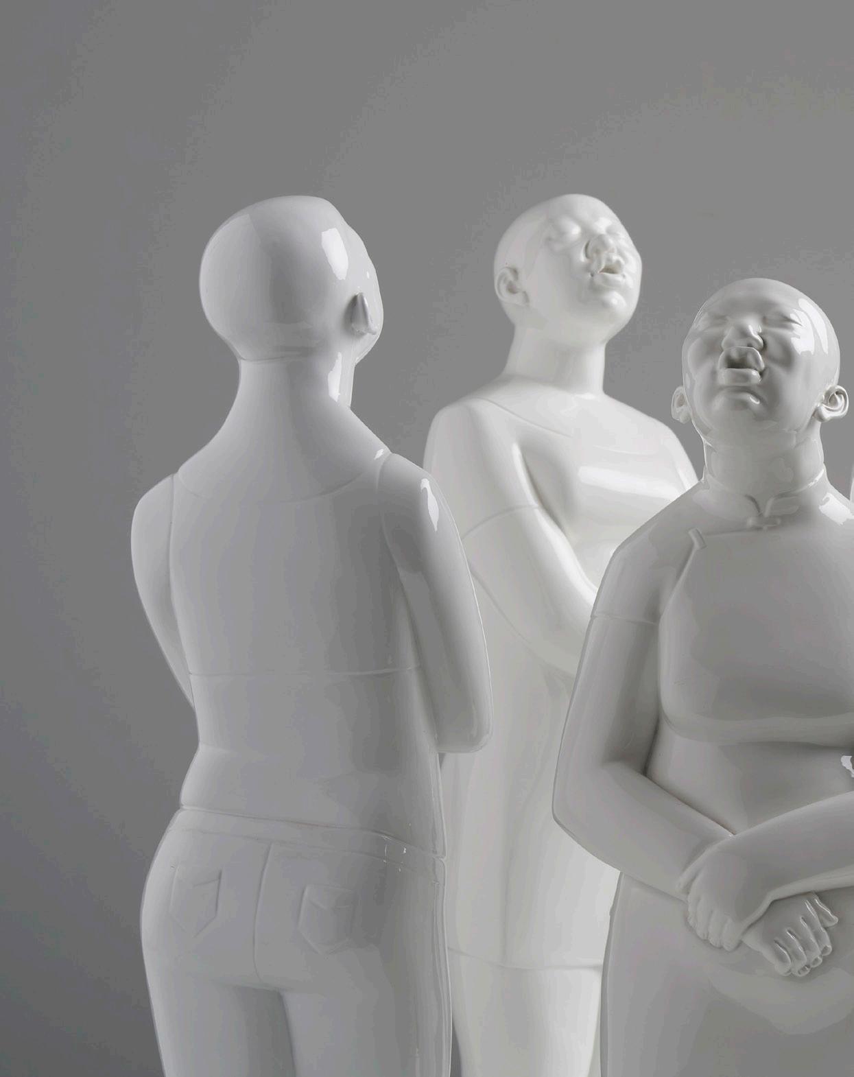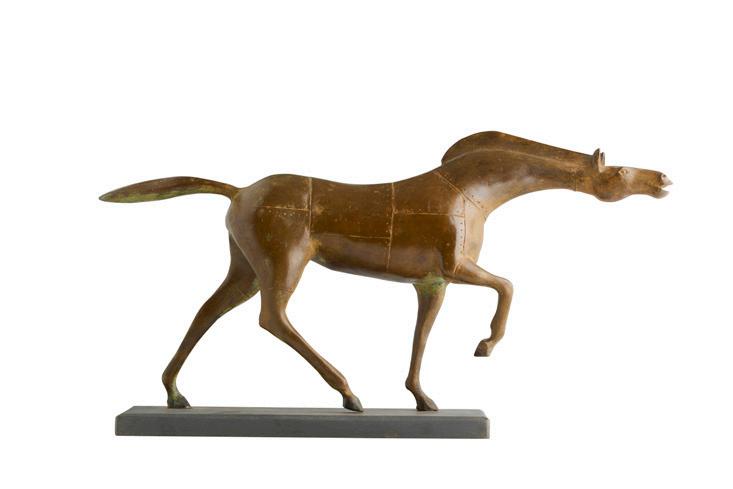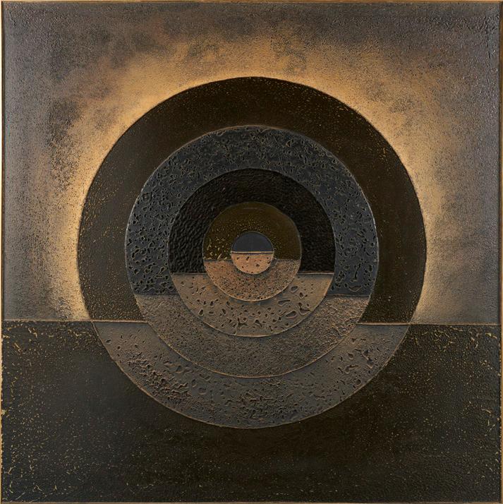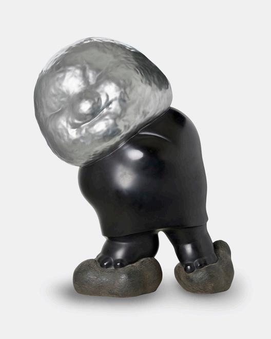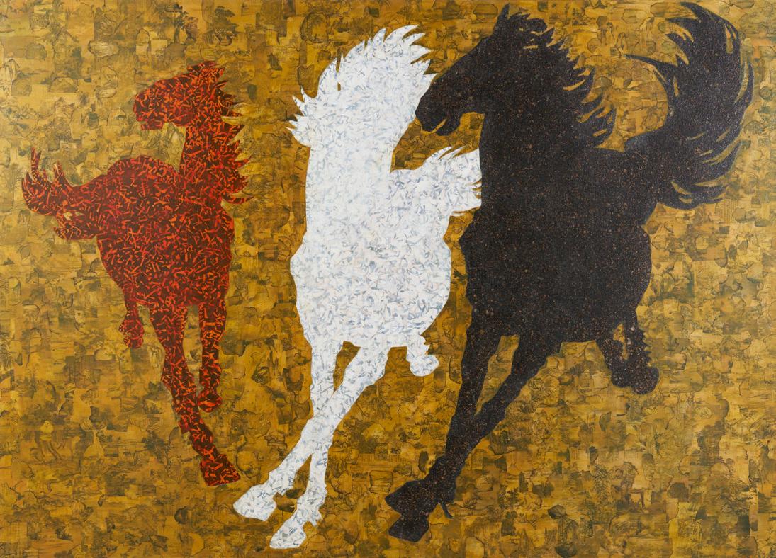 A smaller collection from the Asia Pacific region is also a feature of this auction, transcending cultural boundaries and representing significant contributions to contemporary art. A major work by the internationally celebrated Taiwanese sculptor Li Chen (born 1963), renowned for his large-scale and minimalist sculptures, is included in this offering. Visiting Fairyland, 2004, lot 33, from his Spiritual Journey Through the Great Ether series embodies Li Chen’s signature fusion of Eastern philosophy and modern sculptural techniques. His smooth, rounded forms and subtle contrasts between matte and shiny surfaces lend his works a timeless quality, and this piece invites contemplation of the lighter, more playful aspects of human nature. Complementing this is Racing Horses, a large-scale mixed media work on canvas by the Chinese artist Xue Song (born 1965), lot 36. This piece beautifully exemplifies Xue Song’s practice of layering fragments of printed materials, which he manipulates through fire, combining ashes and paint on canvas. His process of layering hundreds of elements creates artworks of depth and complexity, emblematic of his commitment to craft and meaning.