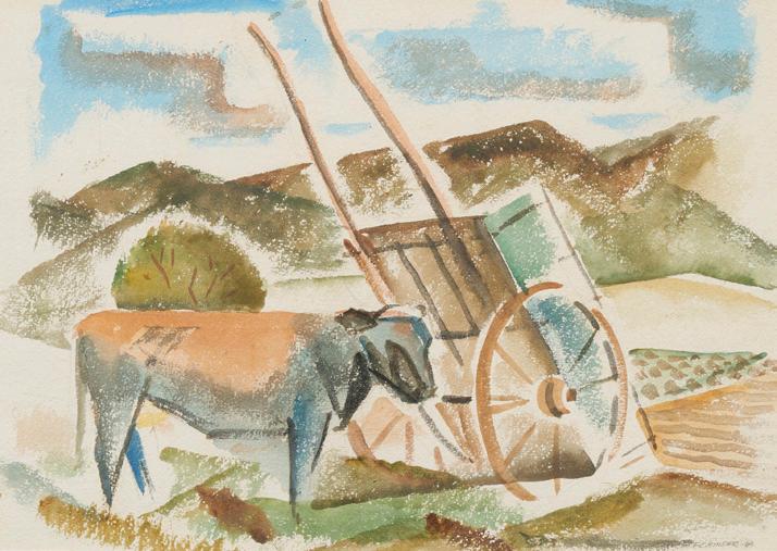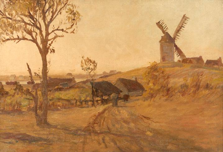 Other noteworthy inclusions are two paintings by the prominent Australian impressionist painter Frederick McCubbin (1855-1917) from the Estate of Carol Lynette Crooks, Sydney. The Thames and St Paul’s Cathedral, 1908, lot 10, is one of several paintings McCubbin produced depicting London during his first and only trip abroad in 1907 This work reflects the profound influence that seeing the masterpieces of artists such as J.M.W. Turner had on McCubbin. His Towards Melbourne (The Old Stone Crusher), c. 1912, lot 11, depicting the iconic Burnley quarries, is another standout and a testament to his enduring connection to this location.
