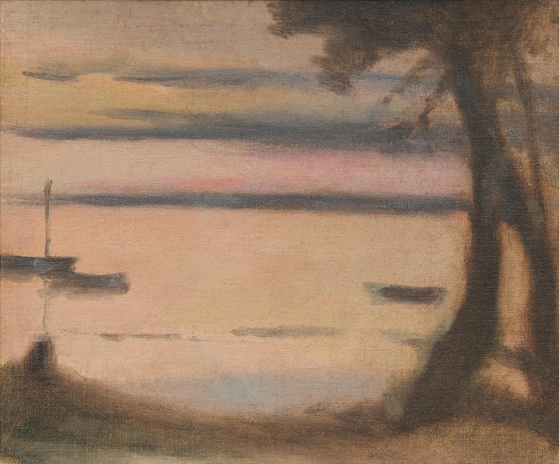 Dusk oil on canvas laid on board titled on partial unknown label verso 24 x 29cm