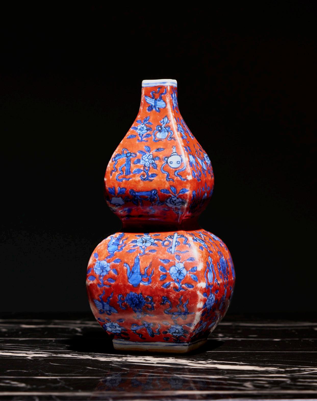 Key highlights from the auction also include: Lot 78 An important and rare blue and white and iron red ground square double-gourd “eight musical instruments“ vase, Longqing mark and of the period; Lot 37 A fine blue and white ‘floral’ ovoid hu vase, Daoguang mark and of the period ; Lot 163 A rare black ‘eggshell’ pottery stemcup, longshan culture; Lot 200 An extremely rare and fine moulded Longquan celadon xiniu and moon dish, Yuan Dynasty, 14th Century etc.