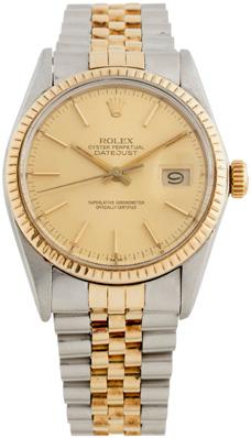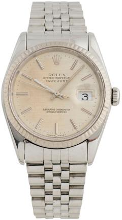 Dial: champagne, applied baton hour markers, polished baton hands with luminous inserts, centre seconds, magnified date aperture at 3