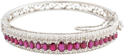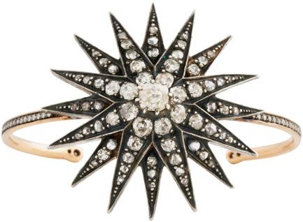 Of oval hinged design, pavé-set to the top with brilliant-cut diamonds together weighing approximately 3.93 carats, inner circumference 172m, gross weight approximately 24.5 grams.