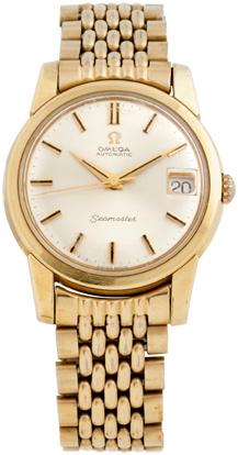 OMEGA SEAMASTER A GOLD CAPPED STAINLESS STEEL WRIST WATCH WITH DATE AND BRACELET CIRCA 1960