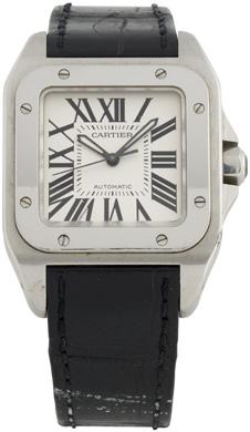 CARTIER SANTOS A LADY’S STAINLESS STEEL AND GOLD BRACELET WATCH CIRCA 1990