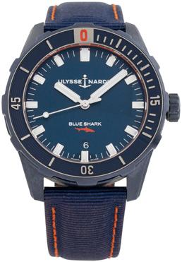 Dial: cream, black Roman numerals, black inner minute track with 5 minute markers, blued steel sword hands