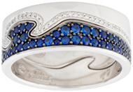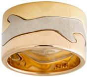 The wide band pierced at the front in a circular pattern pavé-set with brilliant-cut diamonds, size Q, gross weight approximately 17.5 grams.