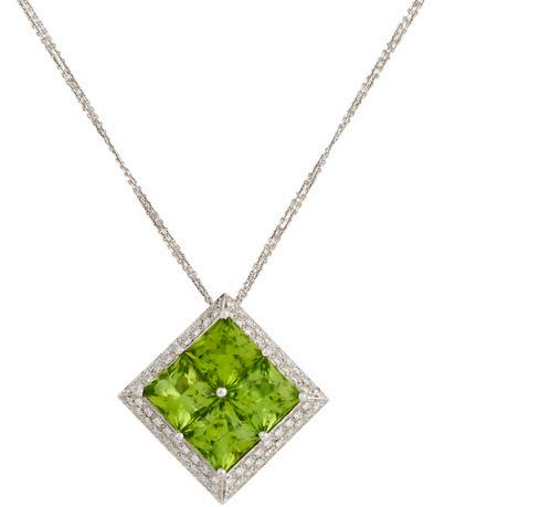 HUBERT, 14CT WHITE GOLD, ENAMEL AND TOPAZ PENDANT NECKLACE