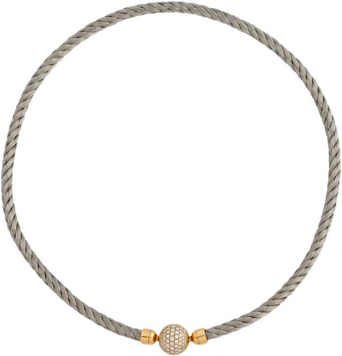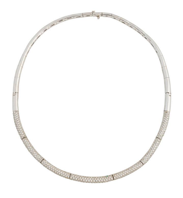The flexible collar pave-set to the front with brilliant-cut diamonds together weighing approximately 7.93 carats, inner circumference 395mm, gross weight approximately 50 grams.