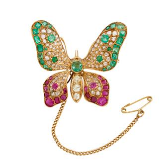 The clasp swap modelled as a butterfly embellished with pink morganite and pave-set diamonds, signed Paspaley, length 28mm, width 27mm.