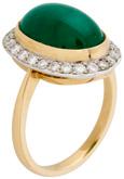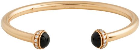 Case: polished gold ovoid three position rotating case, with diamond-set flange case back secured by four screws