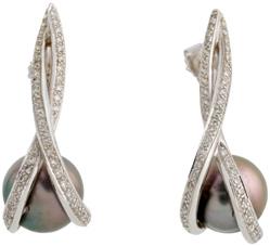 PASPALEY, PAIR OF PLATINUM, DIAMOND AND SOUTH SEA PEARL ‘RIBBON’ EARRINGS