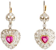 The tops of ribbon design, set throughout with brilliant-cut diamonds together weighing approximately 1.64 carats, supporting two cultured pearl drops measuring approximately 13.00mm, to post and clip fittings, length 36mm.