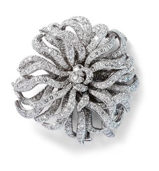 These are complemented by a wealth of white diamonds including a statement-making 10.00 carat (lot 117) elongated emerald cut and a magnificent pair of 5.01 carat and 5.02 carat emerald cut ear studs (lot 146).