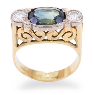 A sapphire and diamond ring, centrally set with an oval faceted parti sapphire of 3.00cts