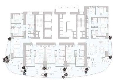Three-bedroom apartments feature a generous open-plan kitchen and living area, framed by a wraparound terrace with endless sea views. The principal bedroom suite, along with two additional bedrooms sharing a bathroom and powder room, create a private family space. FLOOR LOCATOR
