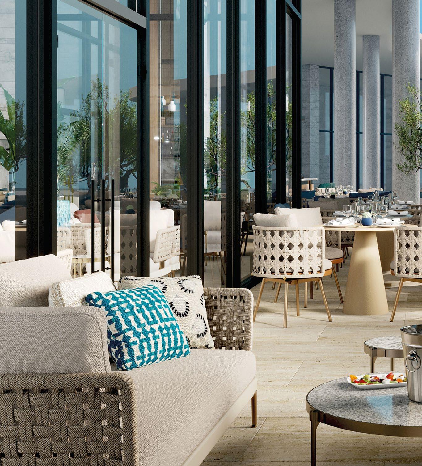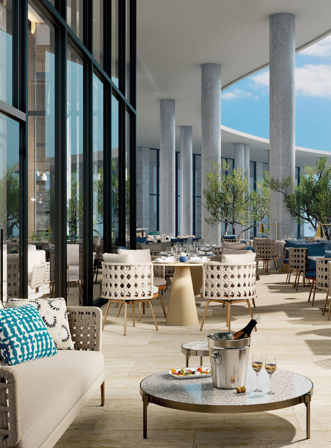 Suspended above the Mediterranean Sea, the signature restaurant and bistro pair inventive cuisine with panoramic horizon lines - an elevated stage for long lunches, sunset cocktails and star - lit suppers.