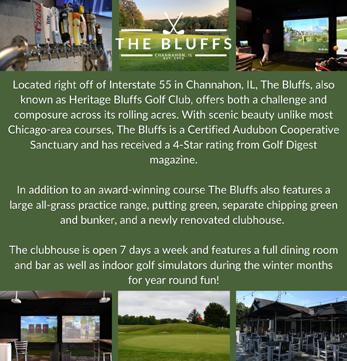 Recognized by many suburban golfers as a hidden gem, PrairieView Golf Club boasts beautiful views of restored dolomite prairieland that is well worth a short drive west out to Bryon, Ill. (south of Rockford). With challenging greens, dramatic bunkering, and supreme conditioning, the course will test the skills and nerves of every golfer. PrairieView is also home to PrairieFire Golf & Grill, a year-round Toptracer Range® with heated bays, lounge seating, and great food and drink selections.