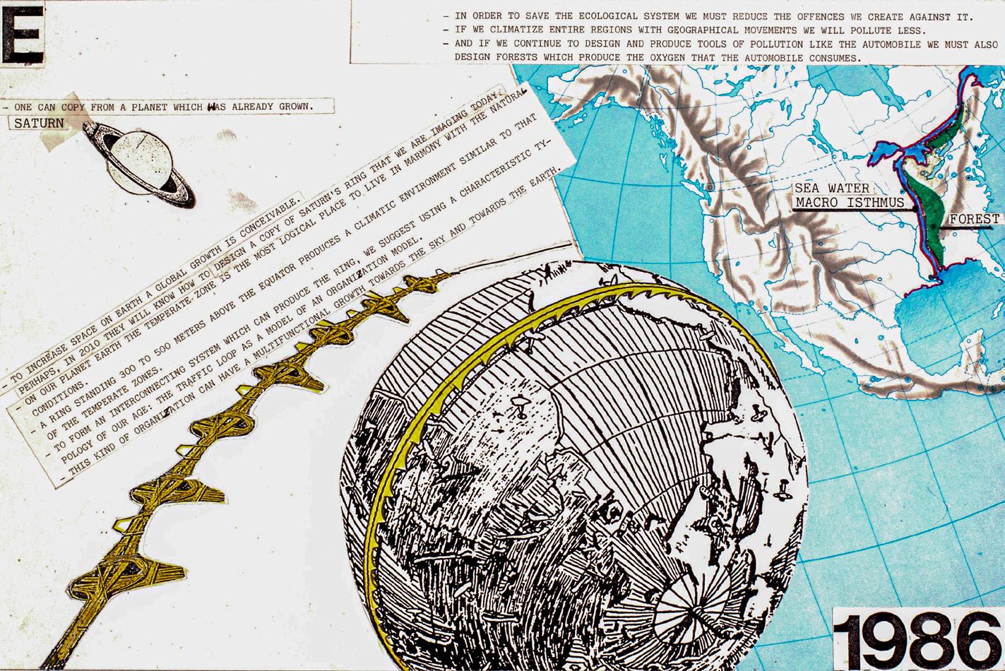 Nel 1986, l’invito ad un concorso su temi ecologici a Los Angeles, offre a Pellegrin l’occasione per sintetizzare la sua ricerca e per proporre un metodo per rivoluzionare l’attuale utilizzo dei suoli: copiare Saturno. Due tavole anticipano la proposta, si tratta di un excursus su due decenni della sua produzione. La prima sintetizza l’attività di ricerca svolta negli anni Sessanta del Novecento sul “Serpente”: