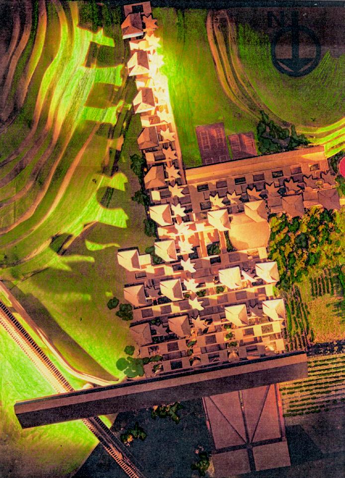 Il tema è ridurre il consumo di suolo, produrre spazio, ridurre rifiuti e trovare un’alternativa alla crescita cancerosa delle città. La proposta trova ispirazione negli insediamenti tardo medievali dove l’abitare e il lavorare erano interconnessi con gli spazi religiosi e quelli per i riti sociali. La valenza di questo esperimento era nella riduzione del traffico, nell’ampliamento dell’attività terziaria e nell’adozione di misure per la trasformazione di rifiuti in fertilizzanti per le aree agricole sottostanti l’insediamento.