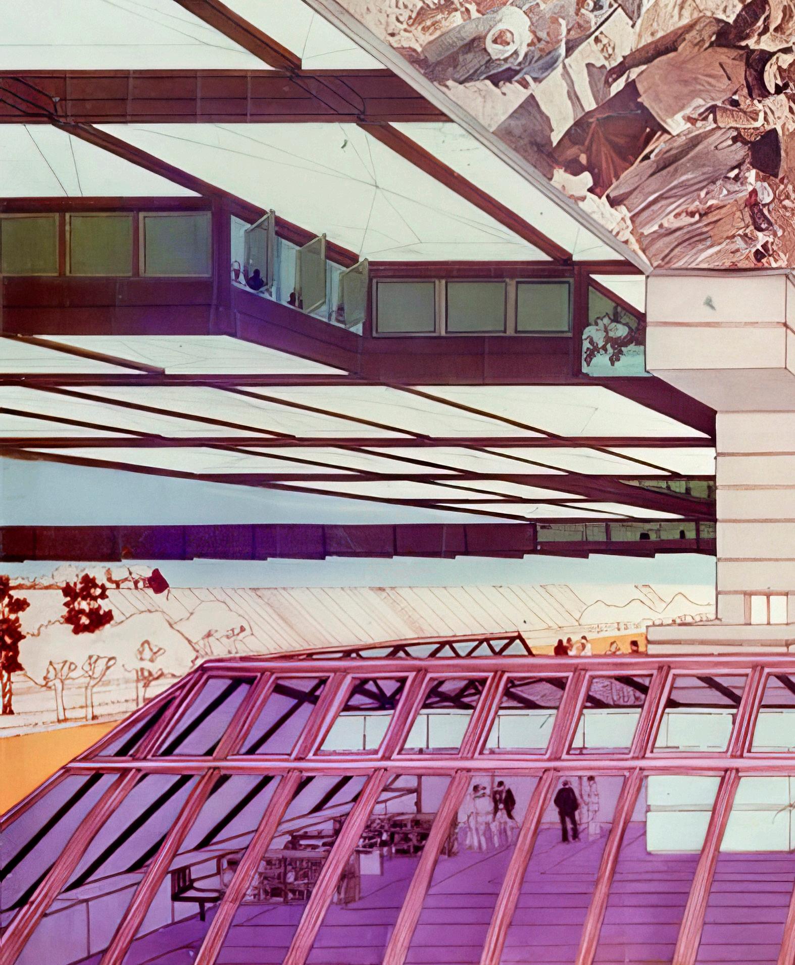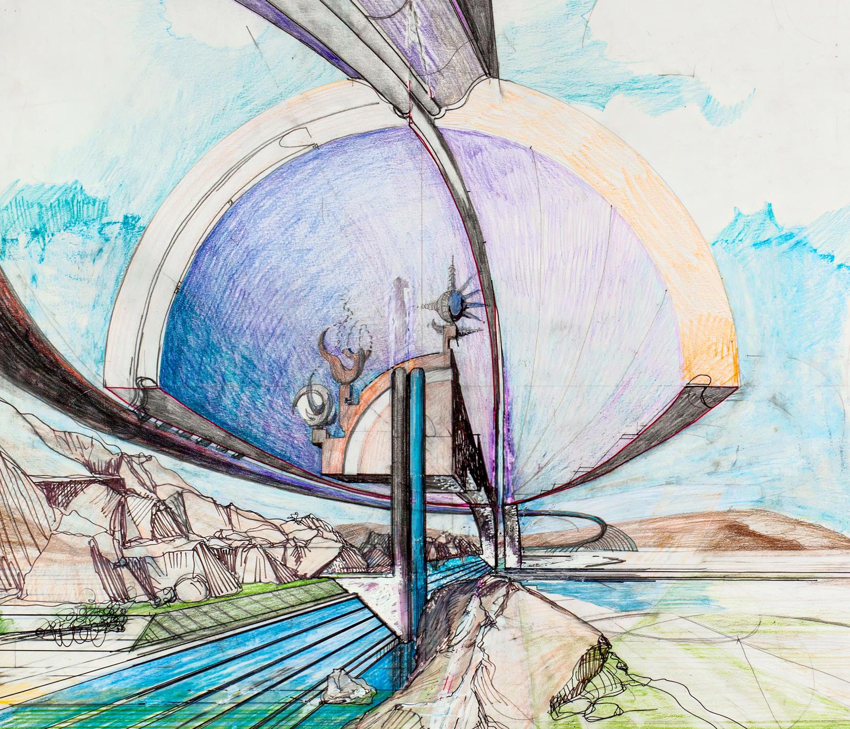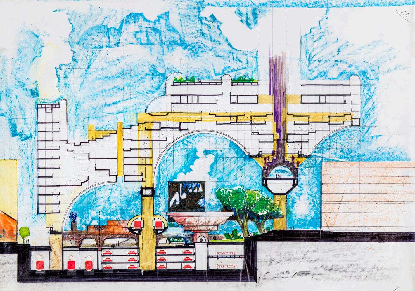 Negli anni Sessanta abbiamo lavorato allo sviluppo delle immagini “master”; la linea del piano di Algeri di Le Corbusier è stata reimmaginata come organismo territoriale che cambia nelle differenti stagioni e che instaura incontri radicali con l’acqua e le montagne. Un esperimento che intende cambiare l’idea di spazio abitato per chi è abituato ad abitare “scatole chiuse”. In quell’ habitat erano inclusi sistemi di trasporto, colture idroponiche, spazi culturali e sociali e le tecnologie per eradicare il problema dei rifiuti.