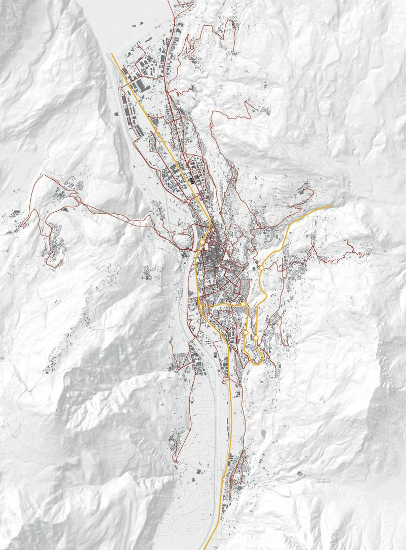 L’intento del lavoro è stato quello di comprendere il sistema attuale della mobilità pubblica, fornendone una interpretazione nuova a diverse scale di intervento che consenta di trasformare tale sistema in una spina dorsale per la regimentazione urbana, rete generativa e di supporto delle ulteriori trasformazioni urbane attuabili nella città di Trento.
