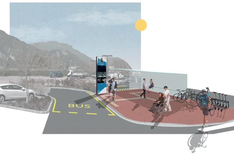 stazione. Si veda, per esempio, quanto realizzato nel comprensorio sciistico Plan De Corones, in Alto Adige. Si propone quindi, l’implementazione di totem informativi e multimediali anche nella città di Trento, con lo scopo di rendere maggiormente attrattive le fermate del bus e migliorare l’efficienza e l’interconnesione tra il trasporto su gomma e altri sistemi di mobilità lenta