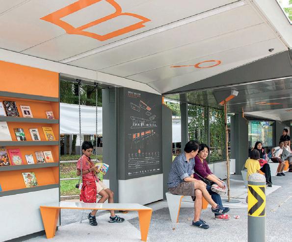 A tal proposito, si è riportato il progetto pilota realizzato da DP Architects nella città di Singapore. Situata all’interno di un quartiere altamente residenziale, tale fermata cerca di ricreare vari ambienti sociali per rendere l’attesa di un autobus un’esperienza gioiosa dove vale la pena sostare e intrattenersi. La fermata offre ampi posti a sedere, uno scaffale di libri adatto a tutte le età, da Enid Blyton a Ray Bradbury, parcheggio per biciclette, un’altalena, opere d’arte dell’illustratore locale Lee Xin Li e un tetto-giardino (Kirk, 2017). Anche lo spazio è iperconnesso. Oltre ai libri stampati, gli utenti possono scansionare un codice QR per scaricare e-book dalla Biblioteca Nazionale, caricare i propri telefoni e sfogliare bacheche digitali interattive che forniscono gli orari di arrivo. Gli schermi trasmettono anche informazioni su meteo, notizie ed eventi locali mentre i pannelli solari aiutano a compensare il consumo di elettricità. I progettisti sperano di poter progettare più fermate così, con lo scopo di rendere l’attesa degli autobus di Singapore un’esperienza gioiosa e arricchente (Kirk, 2017).